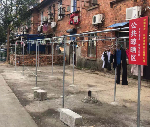 华安社区是南昌市青山湖区湖坊镇典型的开放式老旧社区,社区内存在大量建于上世纪60、70年代的“筒子楼”,大多日晒不充足,为了晾晒衣物居民们有在树木之间、有在空地上立杆子拉绳子的,既影响了其他居民的出行和小区环境美观,更带来消防等方面的安全隐患。